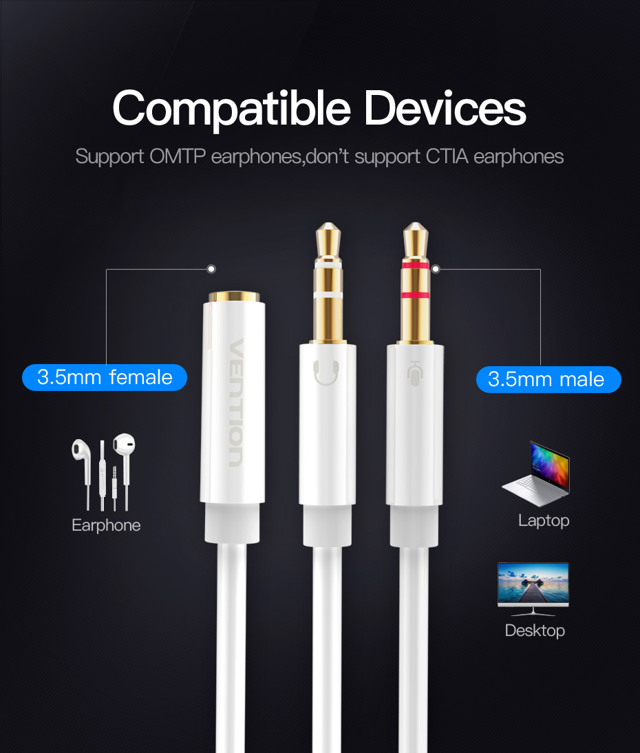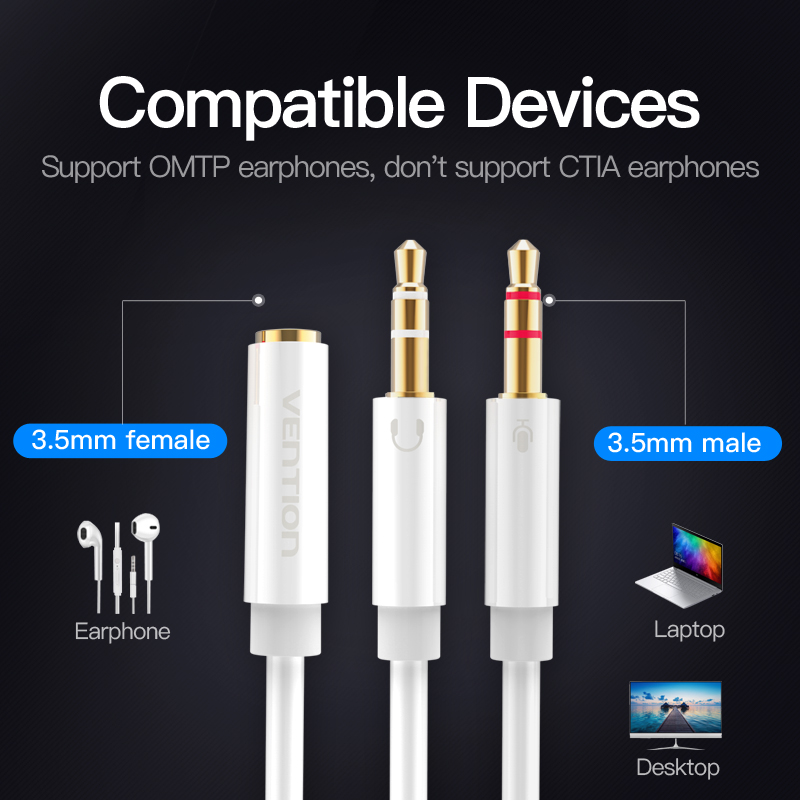 | Nome | Cabo de áudio 2 em 1 com dois Jacks 3.5mm Macho de 4 polos para Jack 3.5mm Fêmea. |