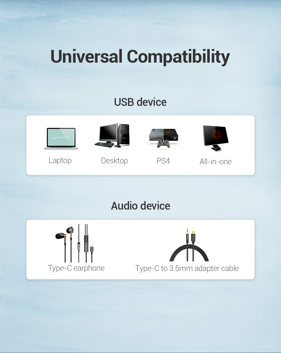 Ideal para portátiles, ordenadores de sobremesa, PS4, todo en uno, auriculares de tipo C.