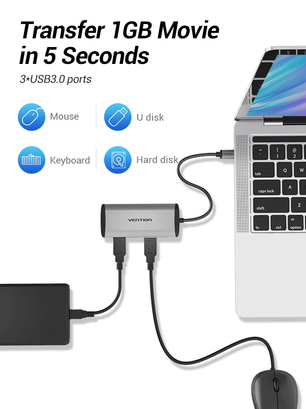 | Transmissão direta | Tipo-C para USB3.0/ RJ45/ PD |