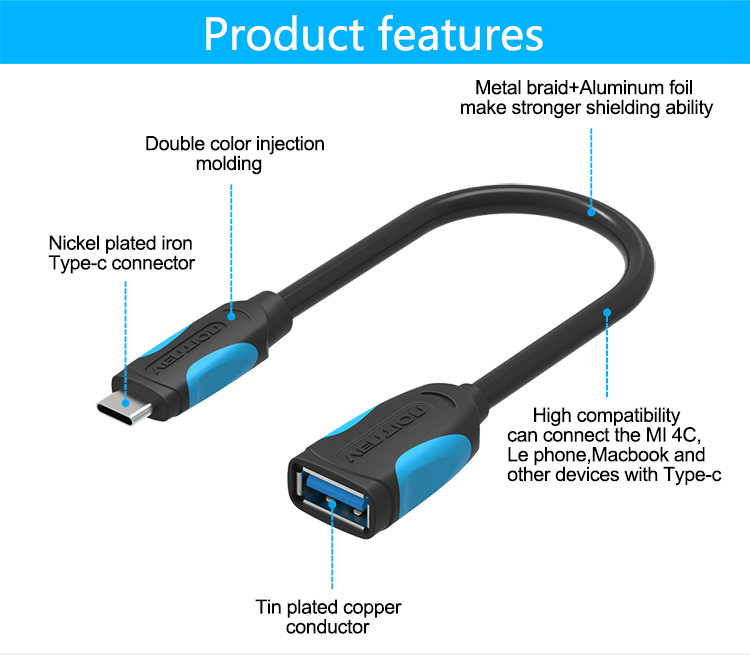 | Nome | Cabo USB3.0 A fêmea para cabo OTG Tipo-C Macho |