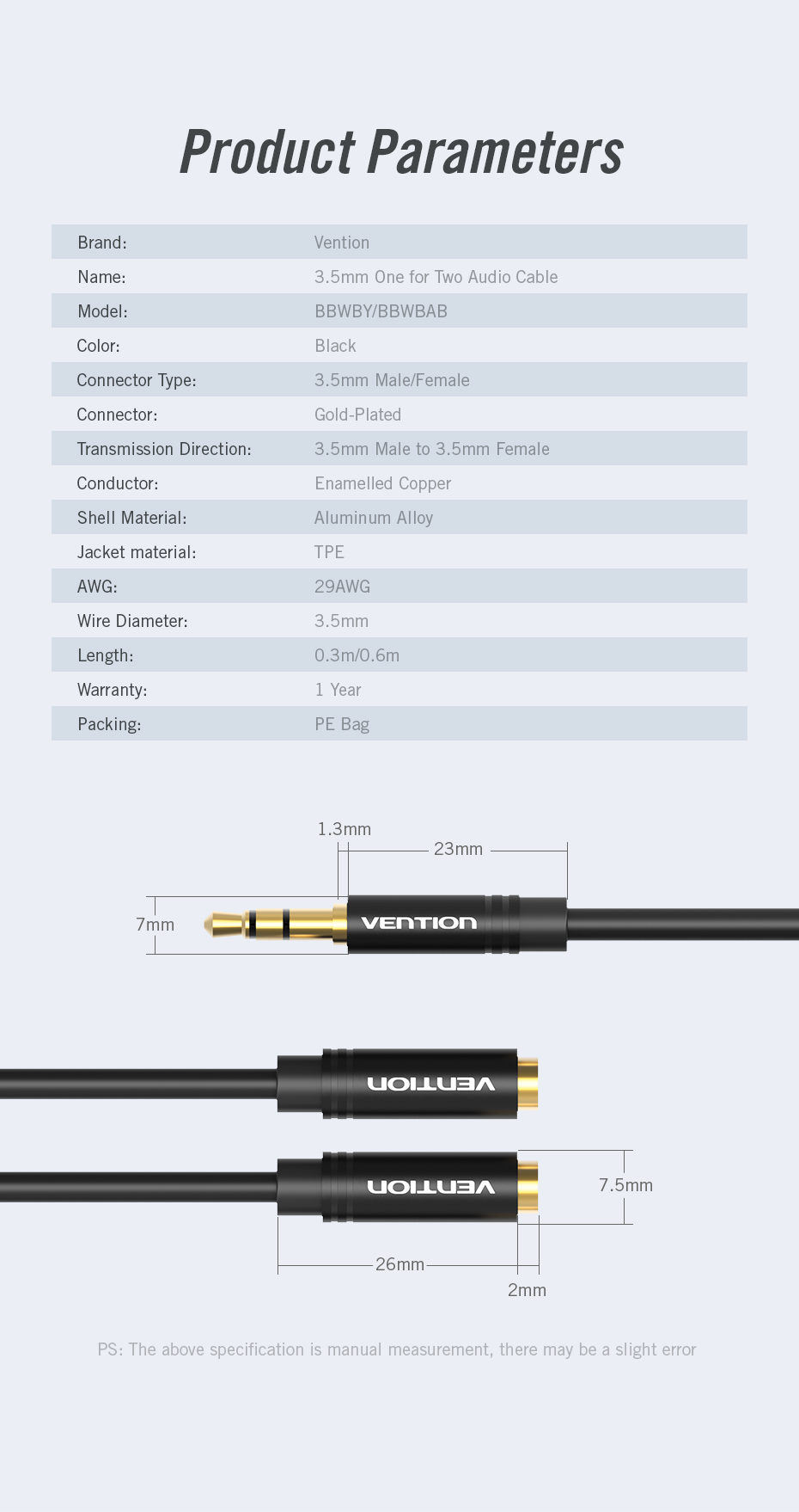 | Transmissão direta | 3.5mm Macho para 3.5 mm Fêmea |