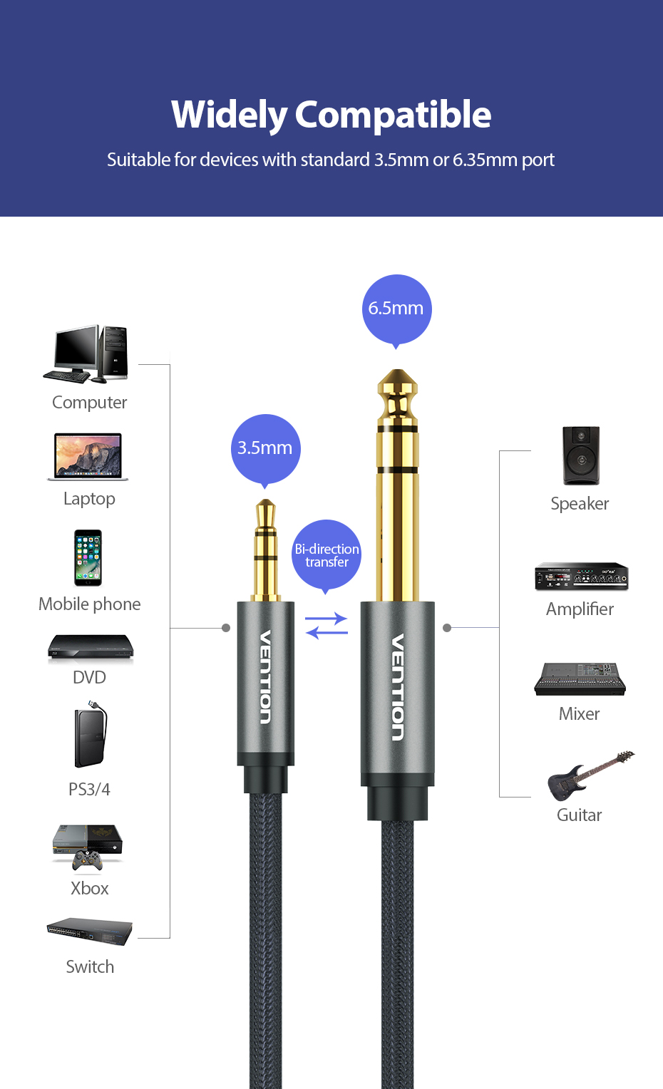 | Tipo de interface | 3.5mm Macho, 6.5mm Macho |