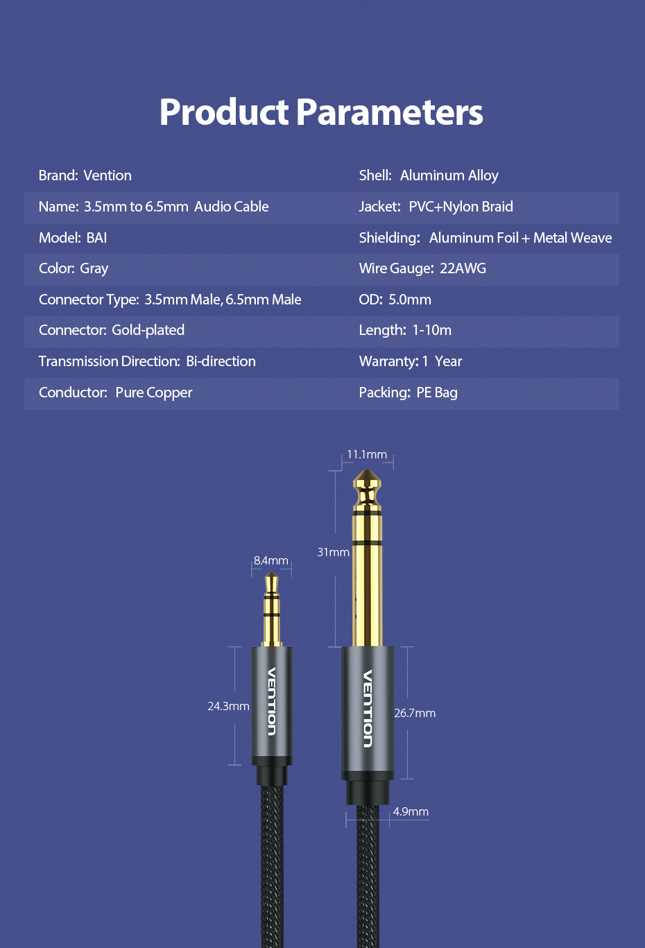 | Longitud del cable | 1m / 2m / 5m / 10m |