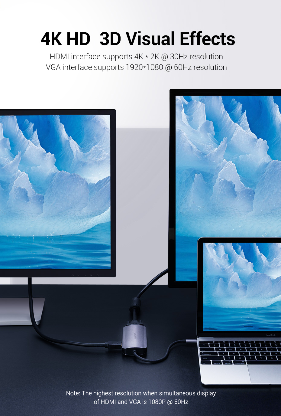 | Interface | 3* USB3.0 (5Gbps), 1* HDMI Fêmea A (4K@30Hz), 1* VGA Fêmea, 1* PD (100W) |