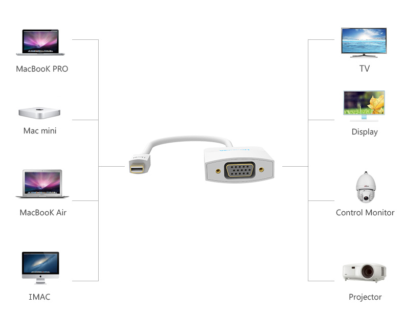 | Tipo de Interface | Mini DP fêmea, VGA macho |