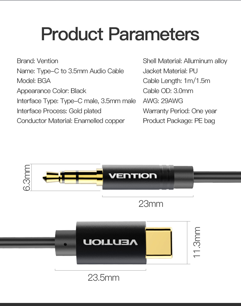 | Nombre | Cable adaptador de audio Tipo-C macho a 3,5 mm macho |