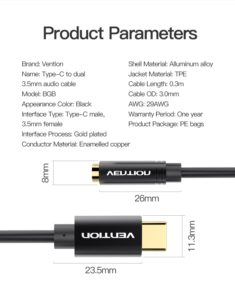 | Nombre | Cable de audio de tipo C a doble hembra de 3,5 mm A |