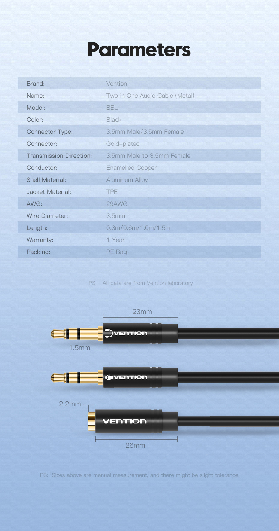 | Direção de Transmissão | 3.5mm macho para 3.5mm fêmea |